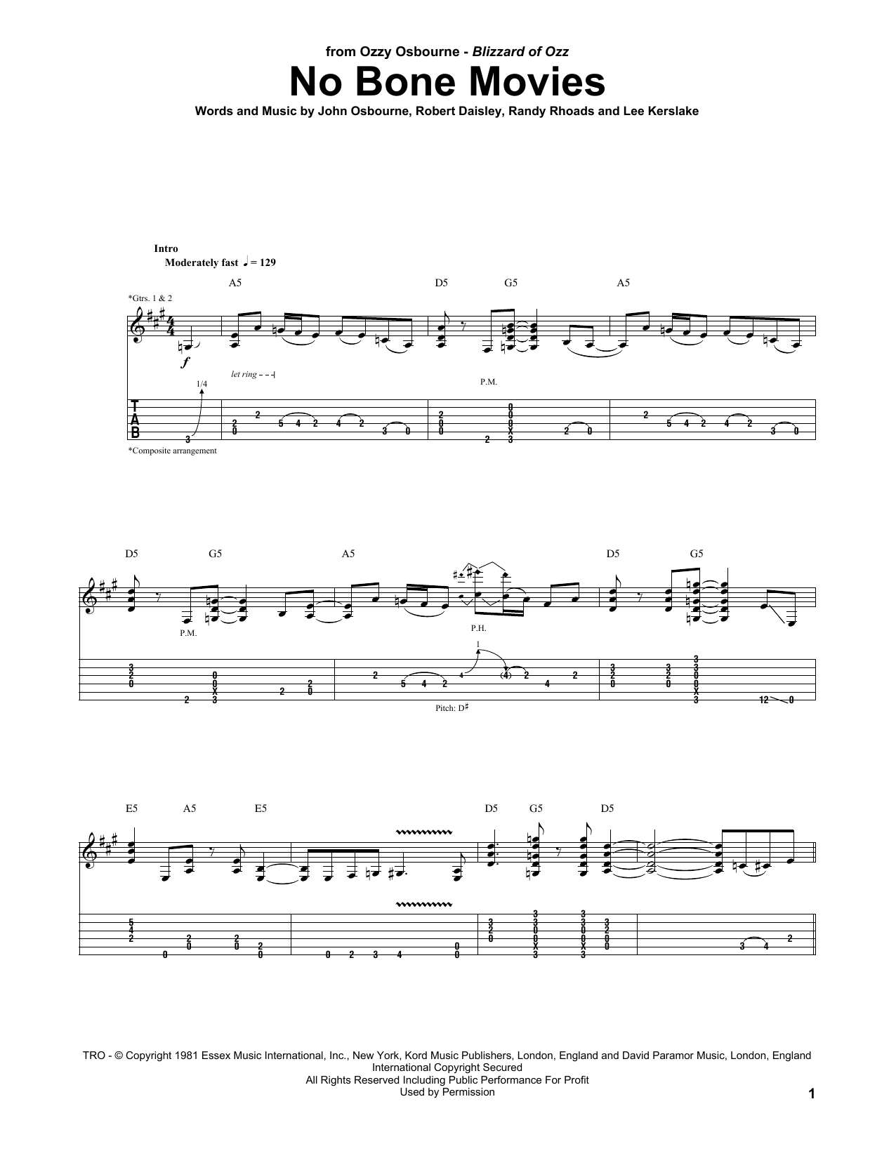 Download or print Ozzy Osbourne No Bone Movies sheet music, chords and digital score arranged for Guitar Tab. This Pop score includes 11 page(s).