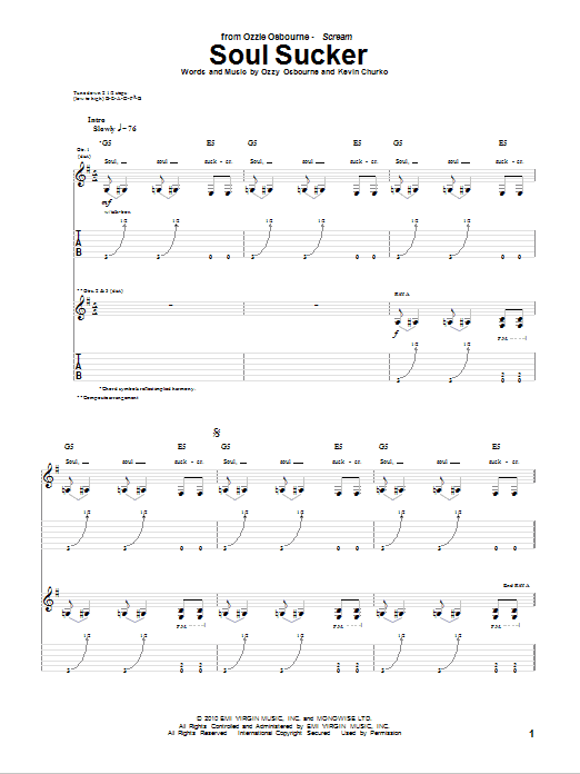 Download or print Ozzy Osbourne Soul Sucker sheet music, chords and digital score arranged for Guitar Tab. This Metal score includes 7 page(s).