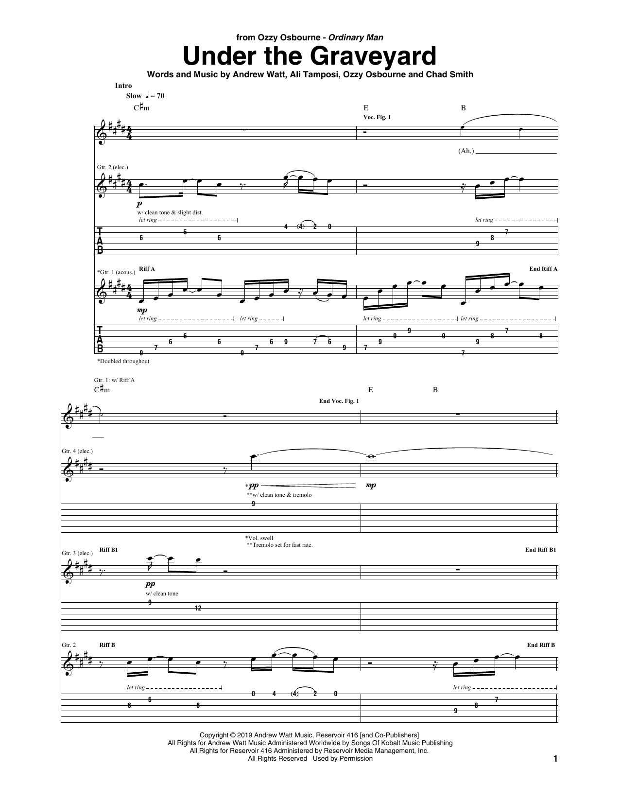 Download or print Ozzy Osbourne Under The Graveyard sheet music, chords and digital score arranged for Guitar Tab. This Metal score includes 10 page(s).
