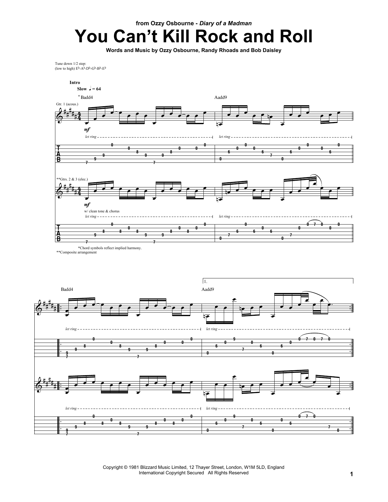 Download or print Ozzy Osbourne You Can't Kill Rock And Roll sheet music, chords and digital score arranged for Guitar Tab. This Pop score includes 14 page(s).