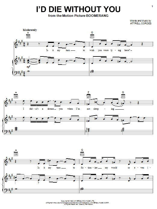 Download or print P.M. Dawn I'd Die Without You sheet music, chords and digital score arranged for Piano, Vocal & Guitar Chords (Right-Hand Melody). This Hip-Hop score includes 7 page(s).