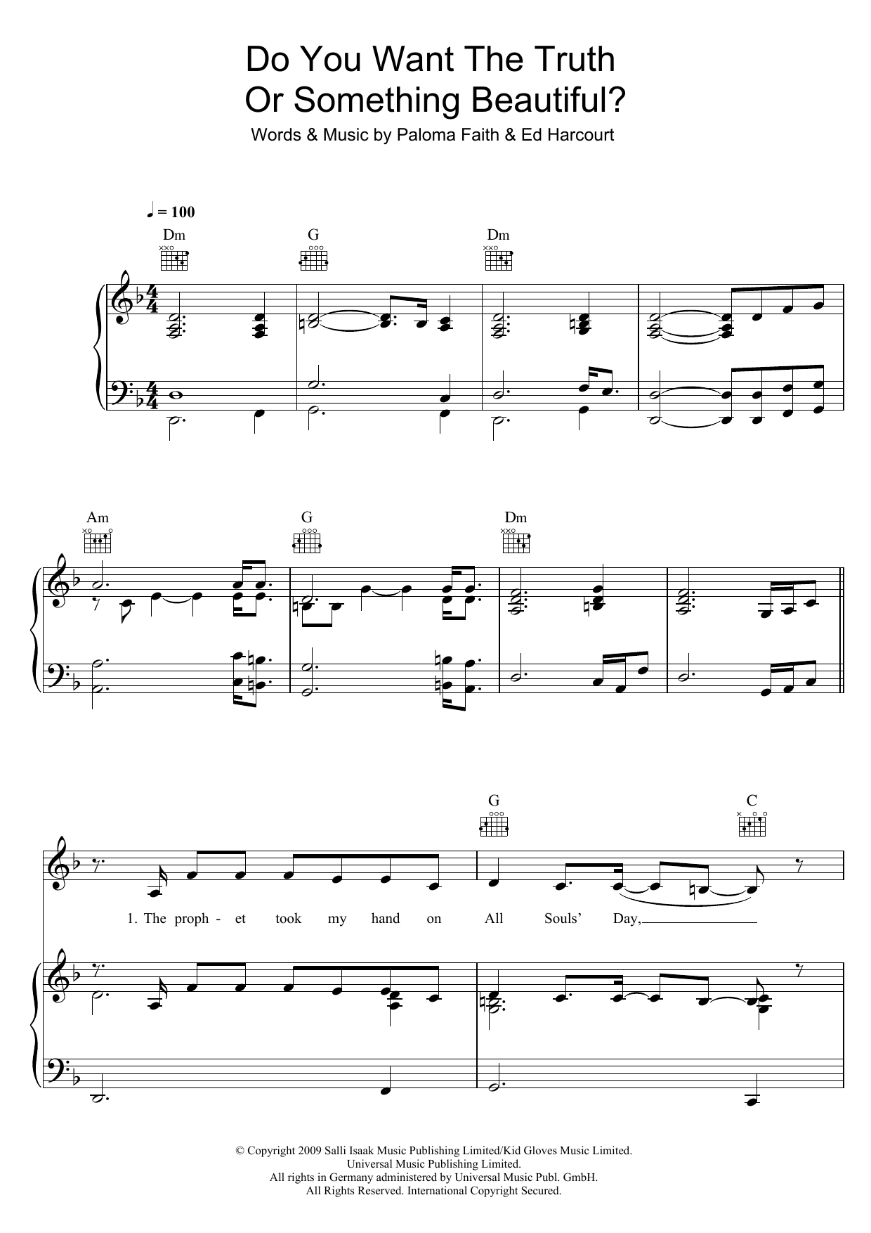 Download or print Paloma Faith Do You Want The Truth Or Something Beautiful? sheet music, chords and digital score arranged for Piano, Vocal & Guitar Chords. This Pop score includes 6 page(s).