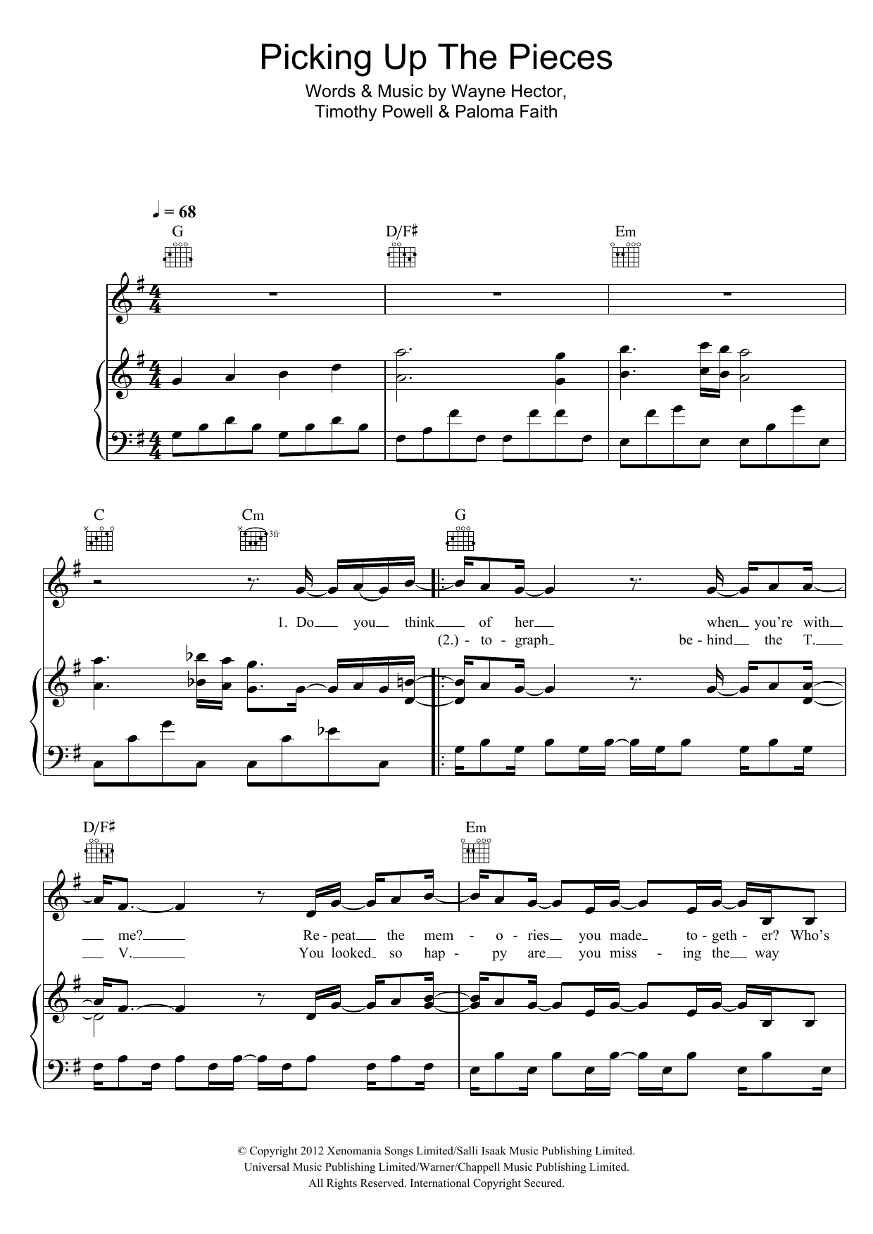 Download or print Paloma Faith Picking Up The Pieces sheet music, chords and digital score arranged for Piano, Vocal & Guitar Chords. This Pop score includes 4 page(s).