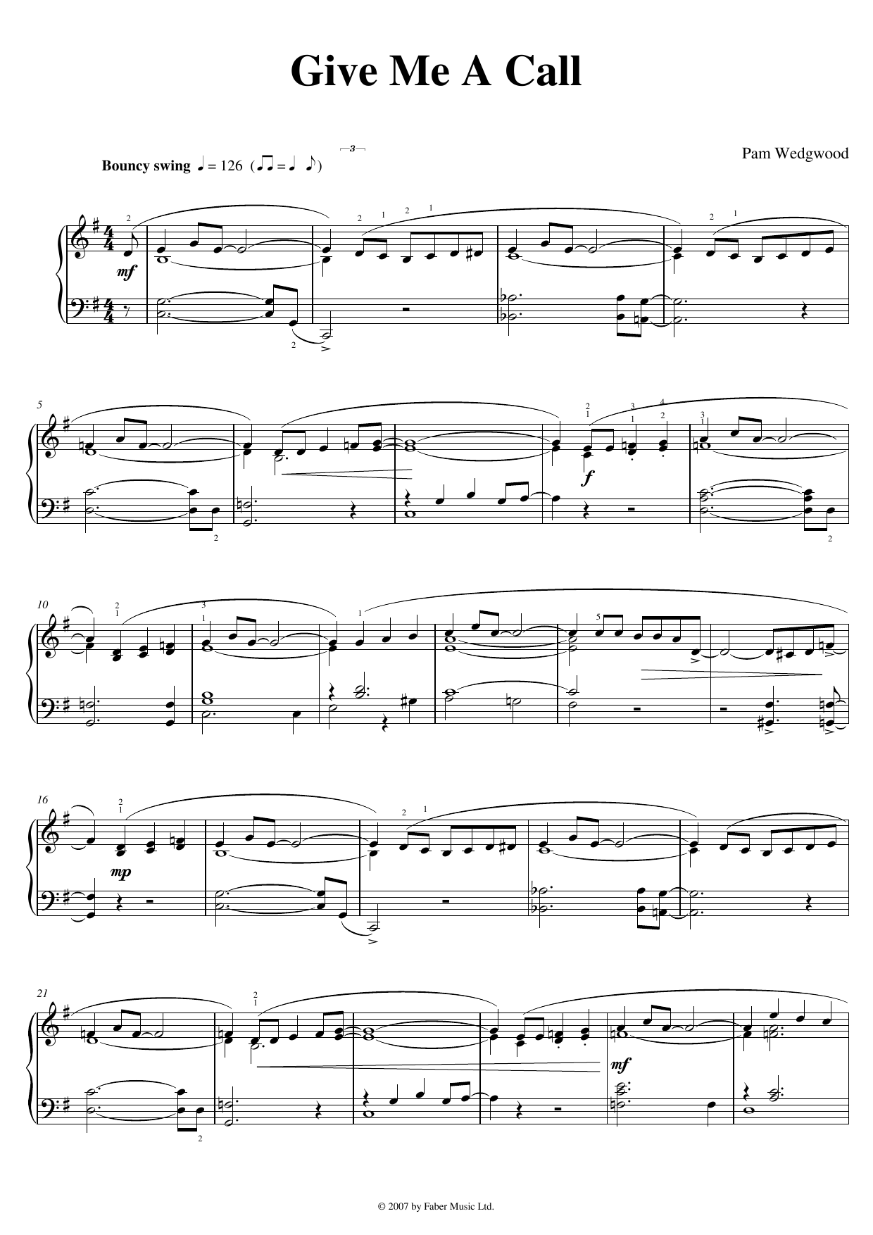 Download or print Pam Wedgwood Give Me A Call sheet music, chords and digital score arranged for Piano Solo. This Children score includes 2 page(s).