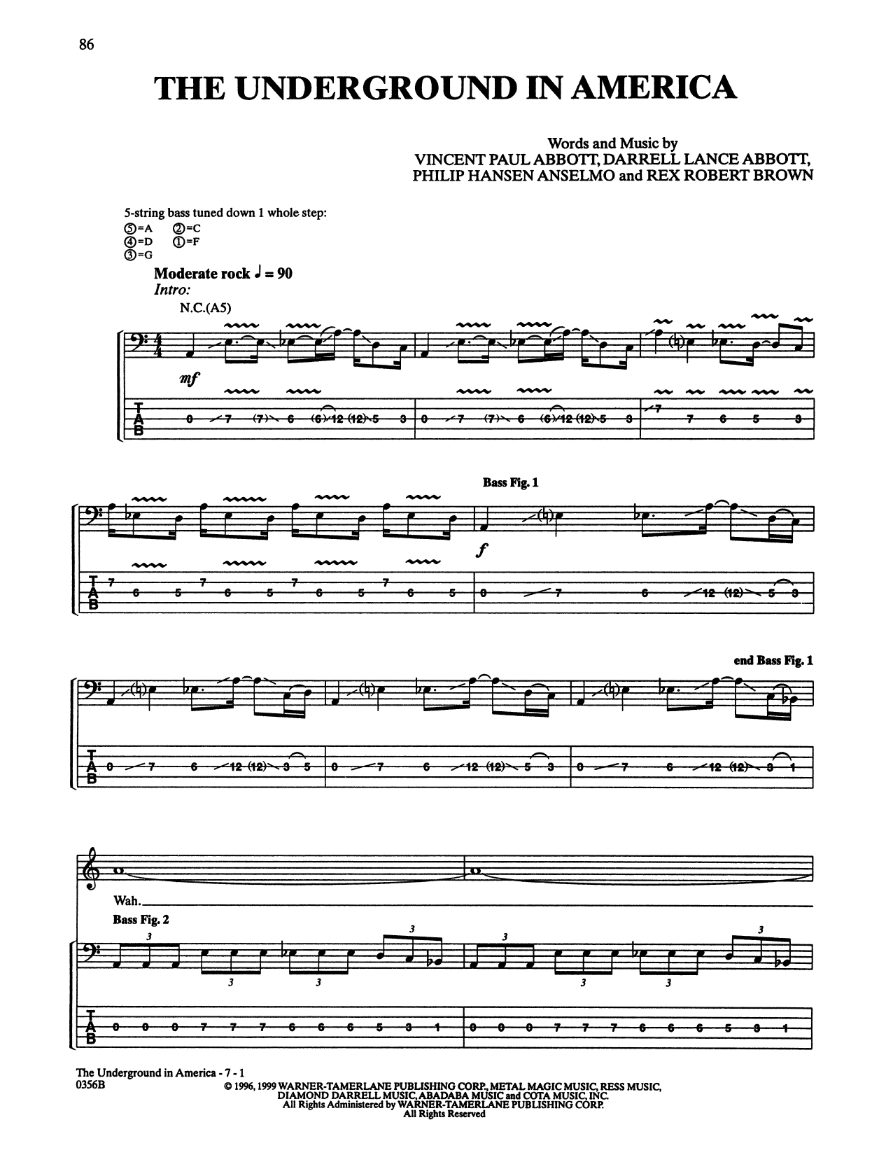 Download or print Pantera The Underground In America sheet music, chords and digital score arranged for Bass Guitar Tab. This Rock score includes 7 page(s).