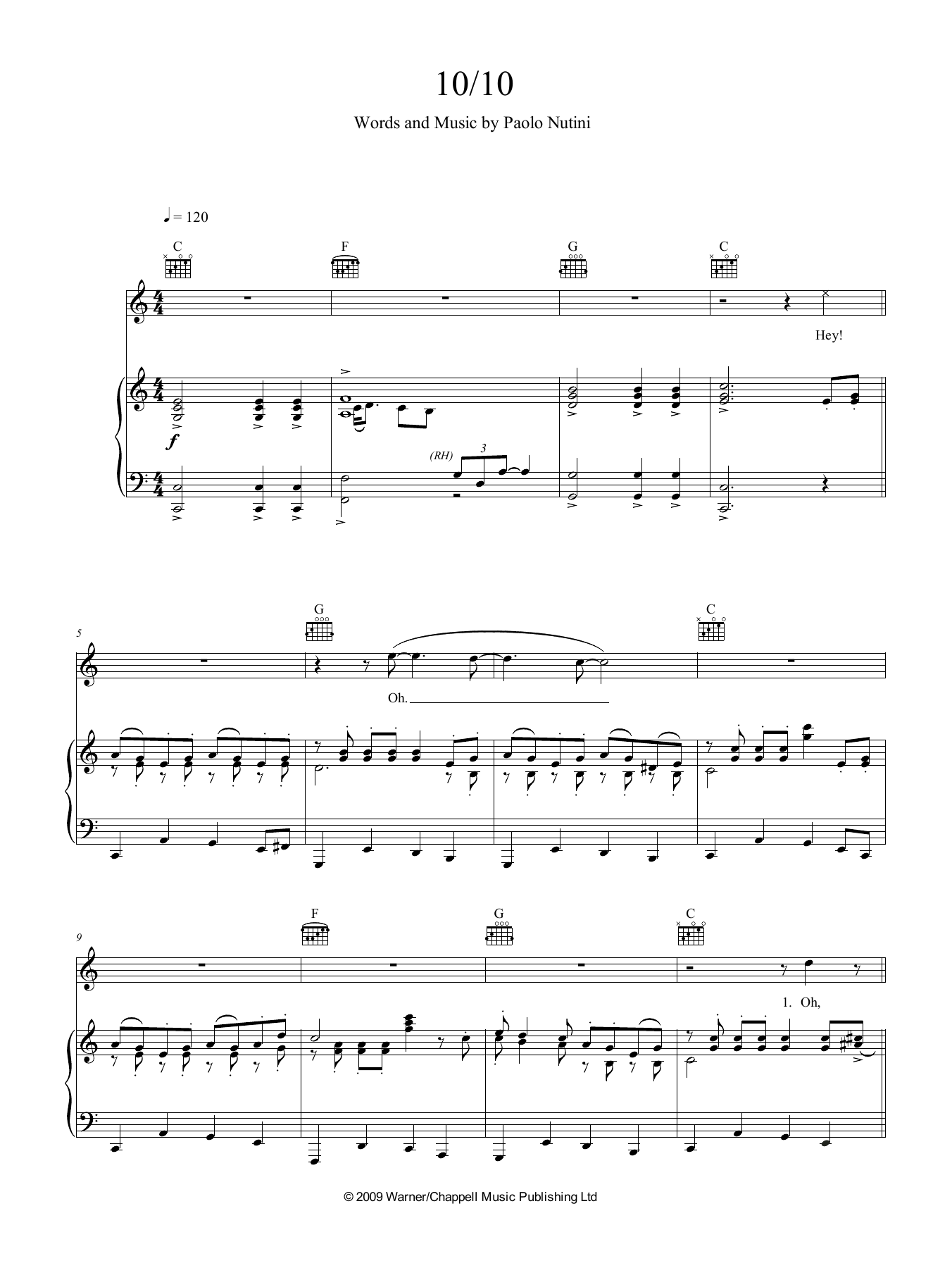Download or print Paolo Nutini 10 Out Of 10 sheet music, chords and digital score arranged for Piano, Vocal & Guitar Chords (Right-Hand Melody). This Pop score includes 5 page(s).