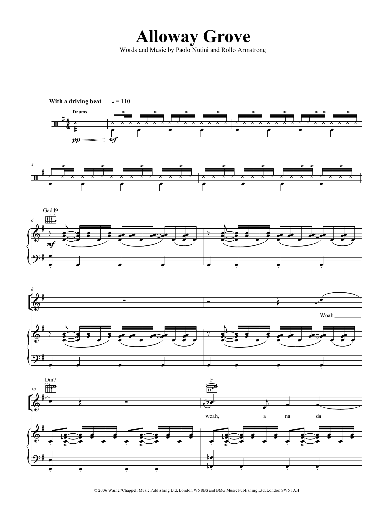 Download or print Paolo Nutini Alloway Grove sheet music, chords and digital score arranged for Piano, Vocal & Guitar Chords (Right-Hand Melody). This Pop score includes 18 page(s).