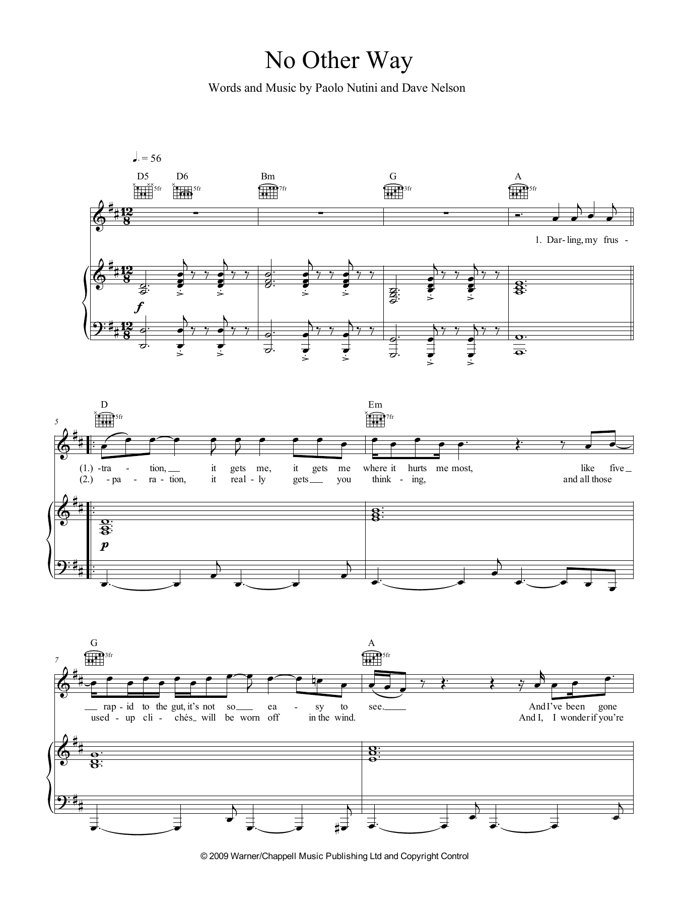 Download or print Paolo Nutini No Other Way sheet music, chords and digital score arranged for Piano, Vocal & Guitar Chords (Right-Hand Melody). This Pop score includes 5 page(s).