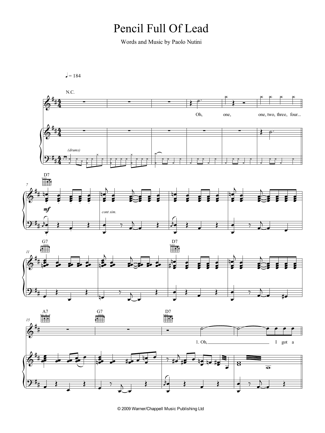 Download or print Paolo Nutini Pencil Full Of Lead sheet music, chords and digital score arranged for Piano, Vocal & Guitar Chords (Right-Hand Melody). This Pop score includes 6 page(s).