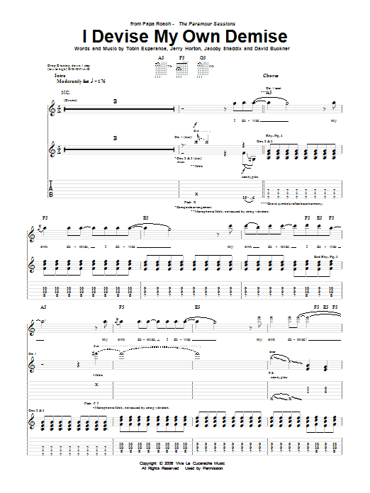 Download or print Papa Roach I Devise My Own Demise sheet music, chords and digital score arranged for Guitar Tab. This Metal score includes 9 page(s).