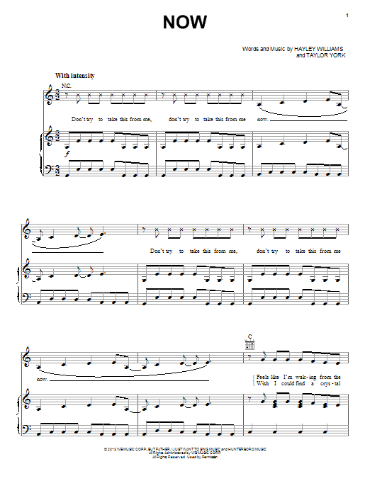 Download or print Paramore Now sheet music, chords and digital score arranged for Piano, Vocal & Guitar Chords (Right-Hand Melody). This Pop score includes 8 page(s).