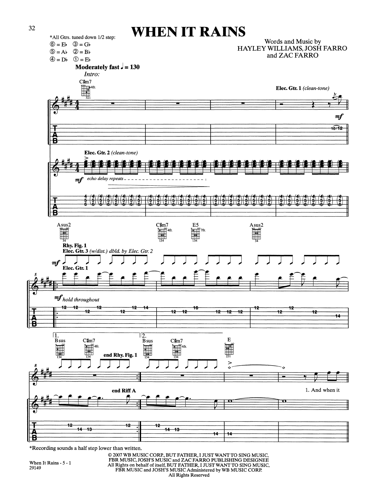 Download or print Paramore When It Rains sheet music, chords and digital score arranged for Guitar Tab. This Pop score includes 5 page(s).