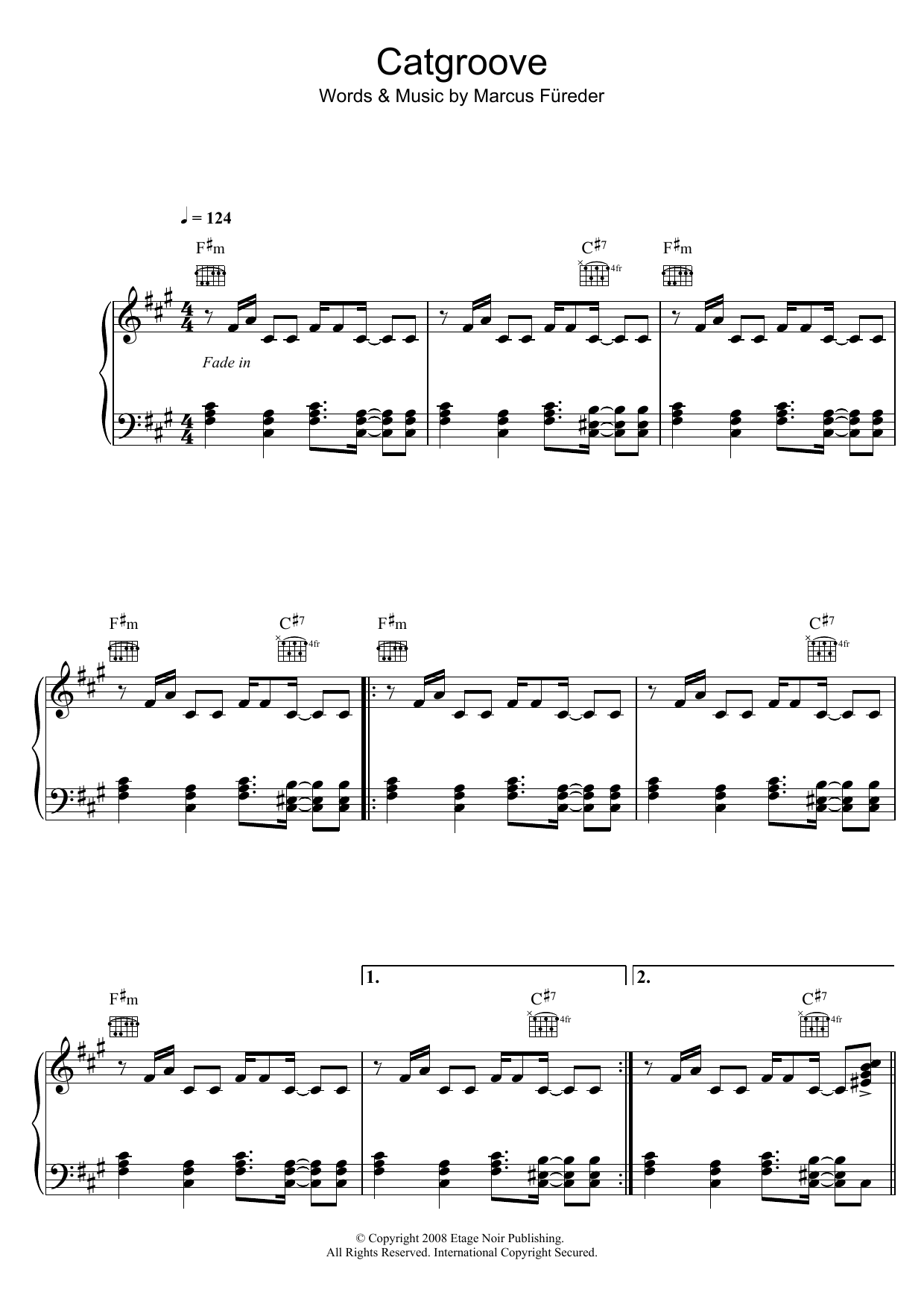 Download or print Parov Stellar Catgroove sheet music, chords and digital score arranged for Piano Solo. This Jazz score includes 5 page(s).