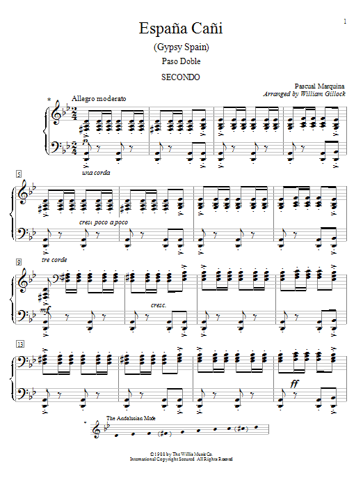 Download or print Pascual Marquina Espana Cani sheet music, chords and digital score arranged for Real Book – Melody & Chords. This Latin score includes 3 page(s).