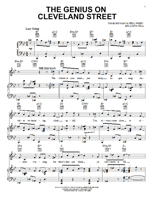 Download or print Pasek & Paul The Genius On Cleveland Street sheet music, chords and digital score arranged for Piano & Vocal. This Christmas score includes 8 page(s).