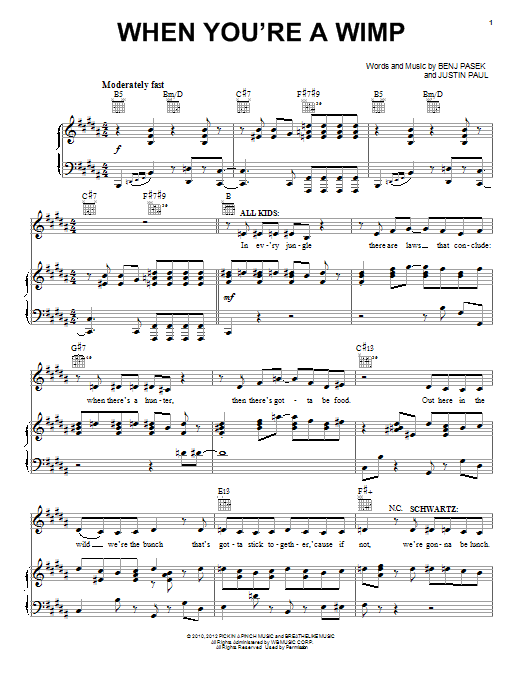 Download or print Pasek & Paul When You're A Wimp sheet music, chords and digital score arranged for Piano & Vocal. This Christmas score includes 8 page(s).
