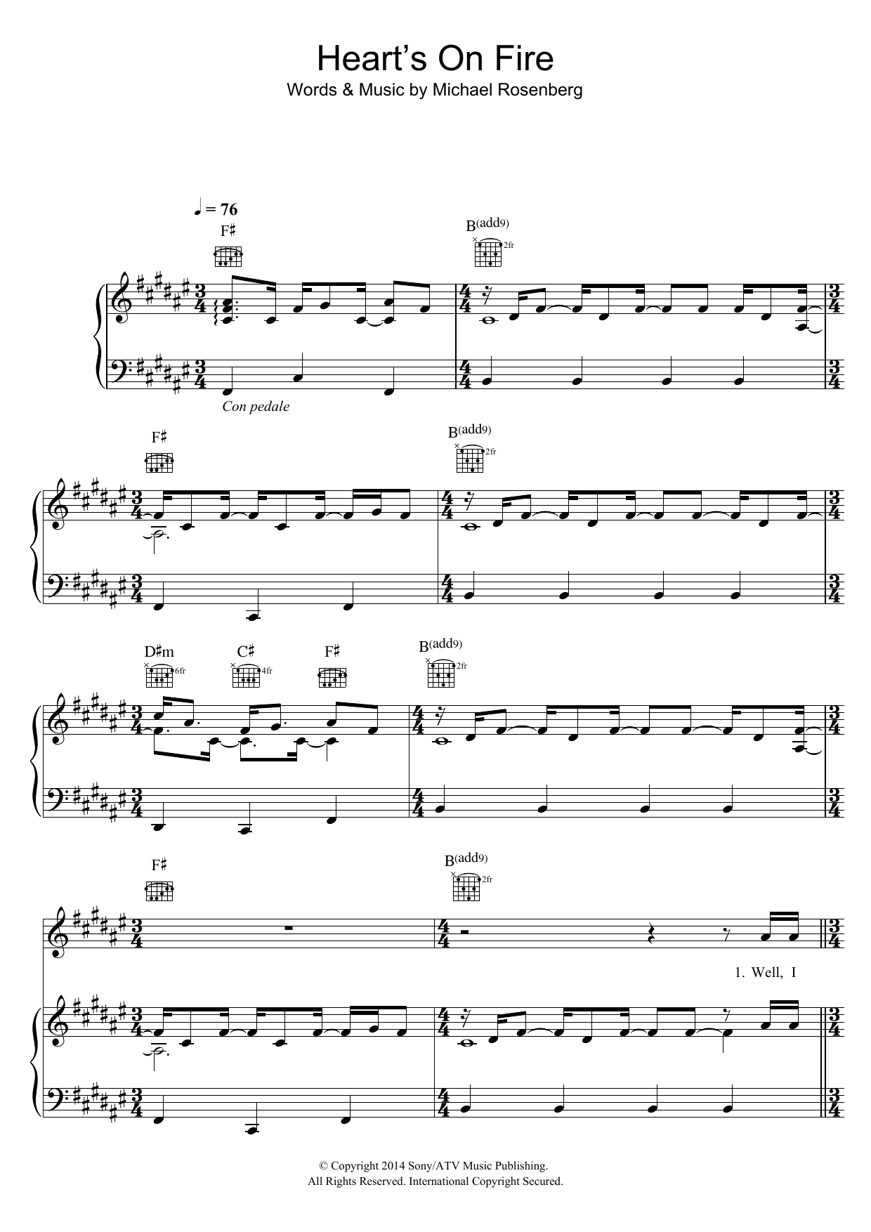 Download or print Passenger Heart's On Fire sheet music, chords and digital score arranged for Lead Sheet / Fake Book. This Folk score includes 3 page(s).