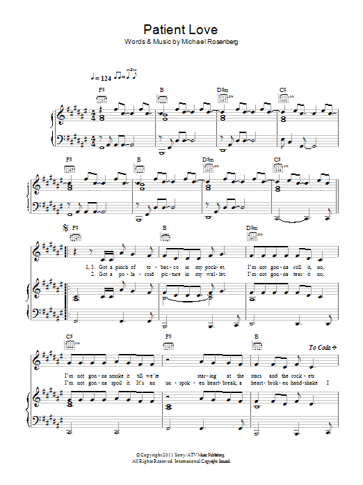 Download or print Passenger Patient Love sheet music, chords and digital score arranged for Piano, Vocal & Guitar Chords. This Folk score includes 4 page(s).