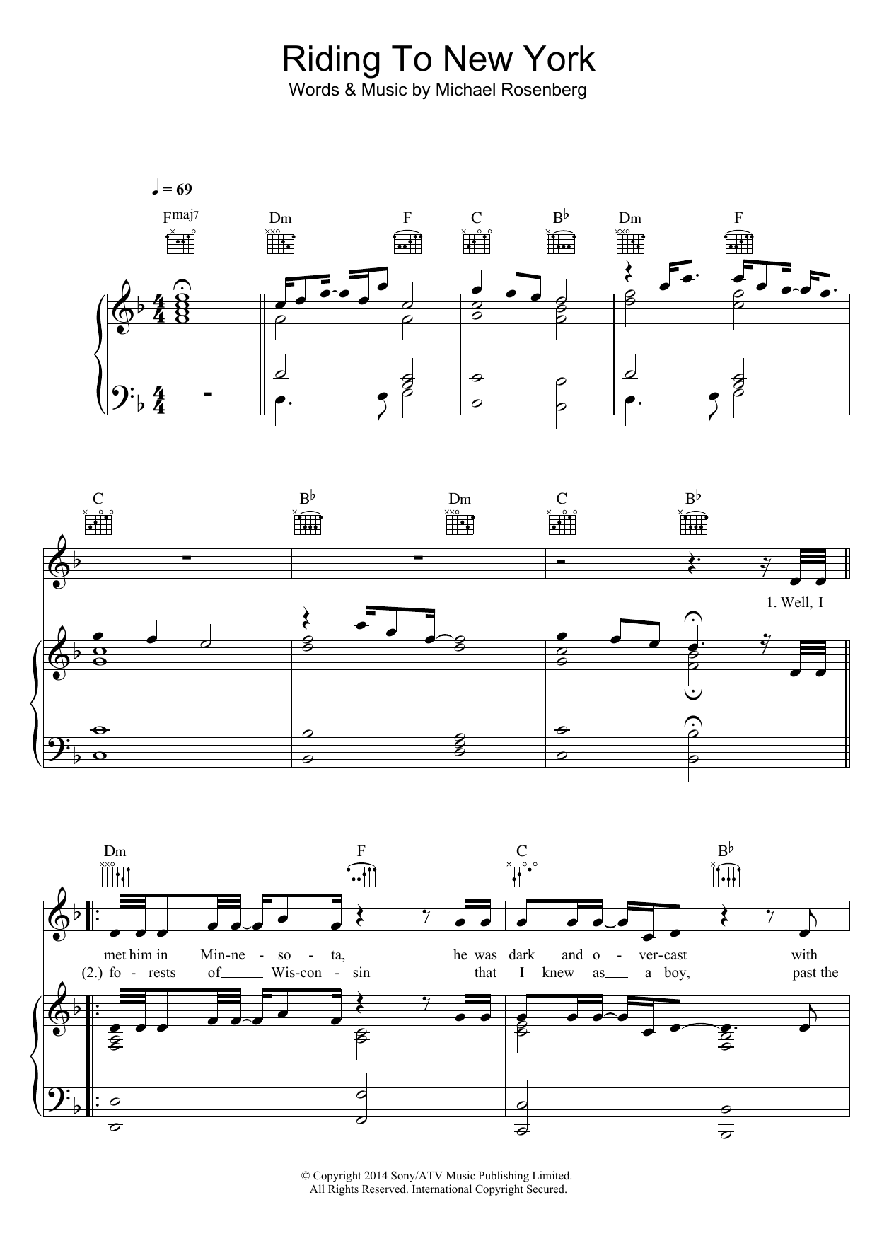 Download or print Passenger Riding To New York sheet music, chords and digital score arranged for Piano, Vocal & Guitar Chords. This Folk score includes 7 page(s).