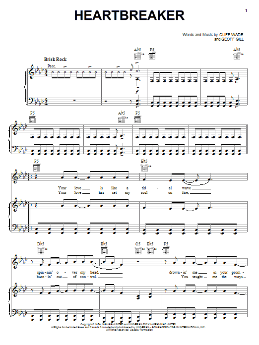 Download or print Pat Benatar Heartbreaker sheet music, chords and digital score arranged for Piano, Vocal & Guitar Chords (Right-Hand Melody). This Pop score includes 6 page(s).