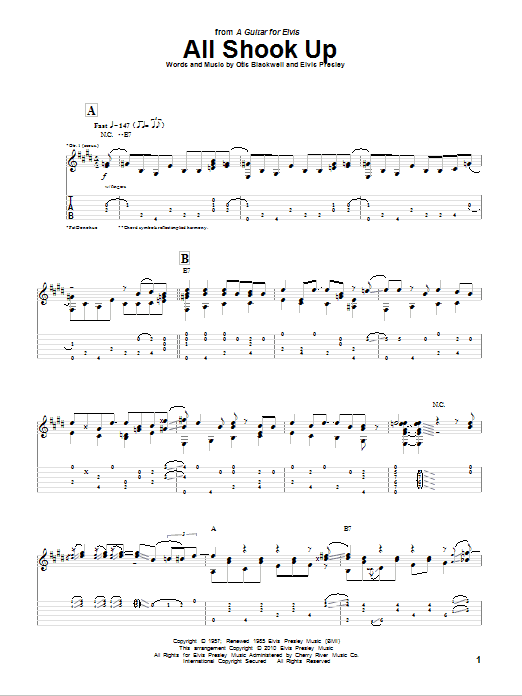 Download or print Pat Donohue All Shook Up sheet music, chords and digital score arranged for Guitar Tab. This Pop score includes 5 page(s).