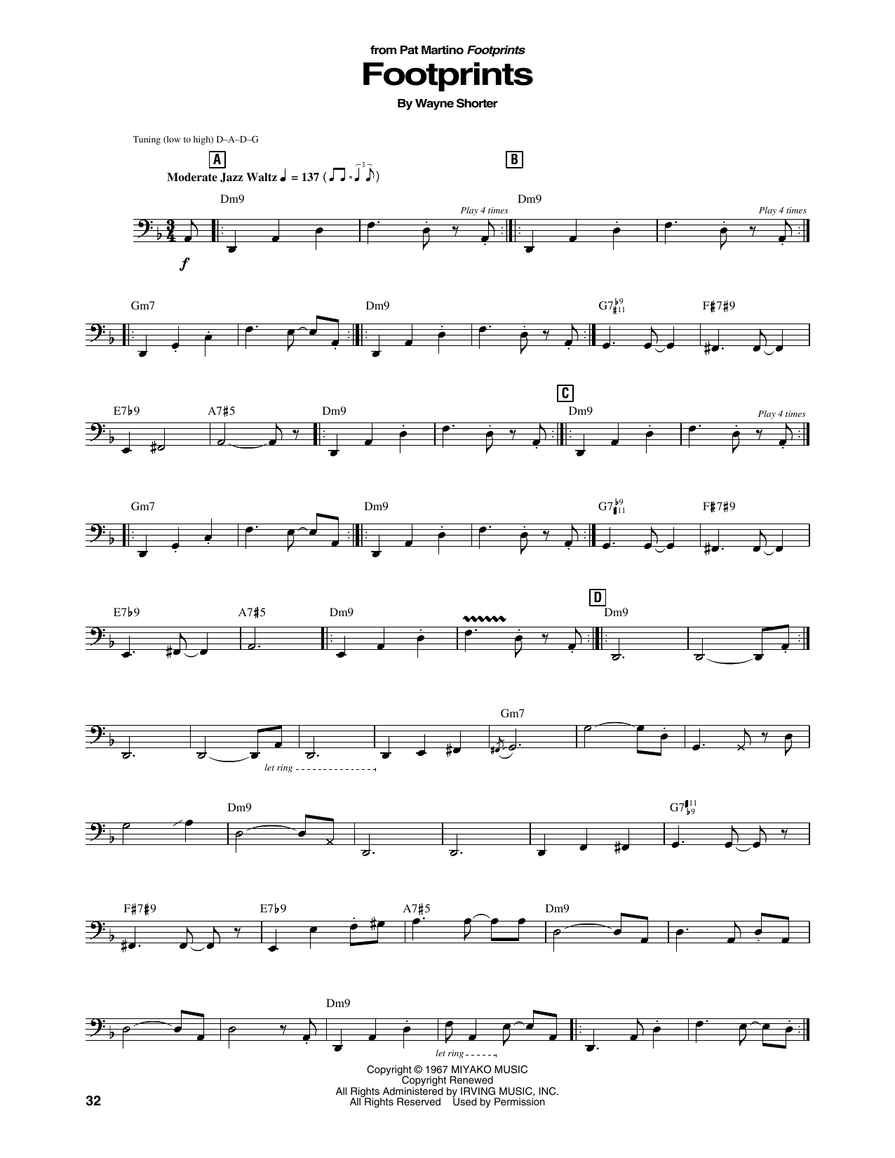 Download or print Pat Martino Footprints sheet music, chords and digital score arranged for String Bass Transcription. This Jazz score includes 6 page(s).
