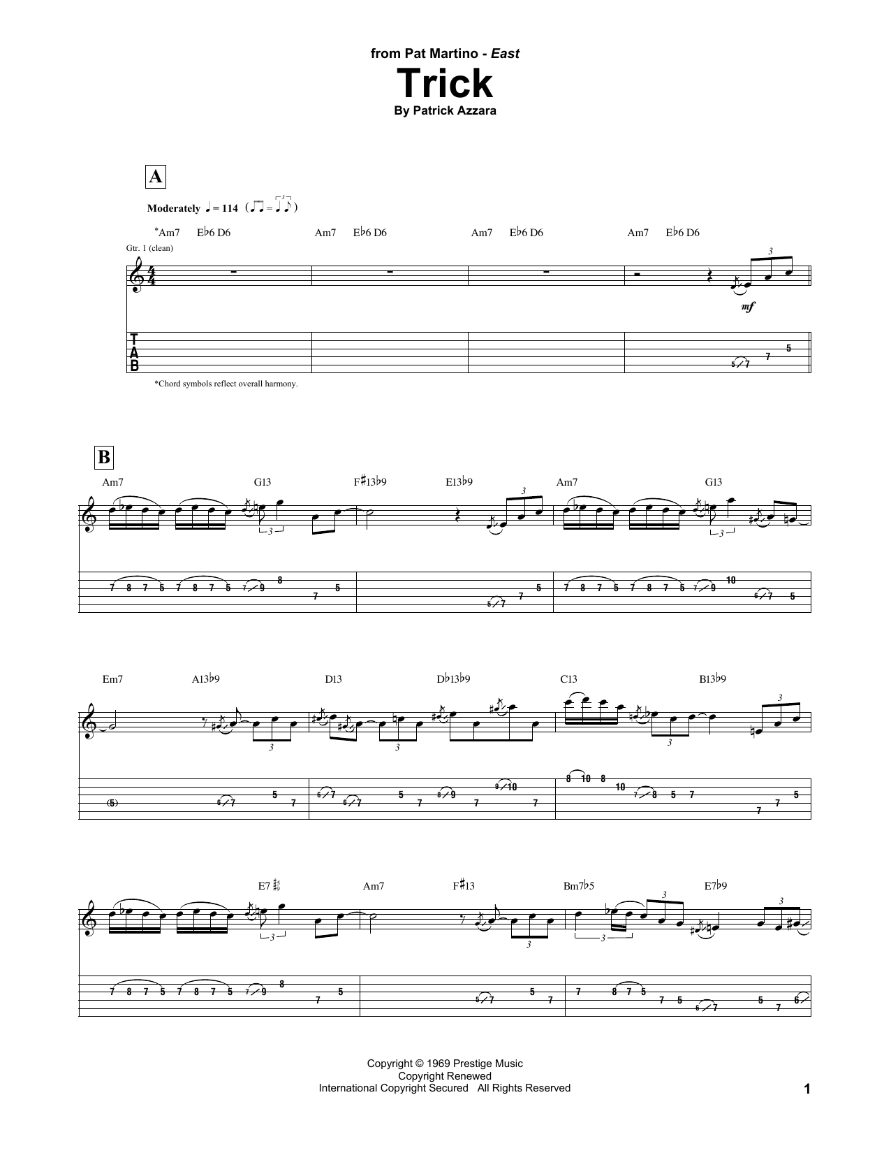 Download or print Pat Martino Trick sheet music, chords and digital score arranged for Guitar Tab. This Jazz score includes 15 page(s).
