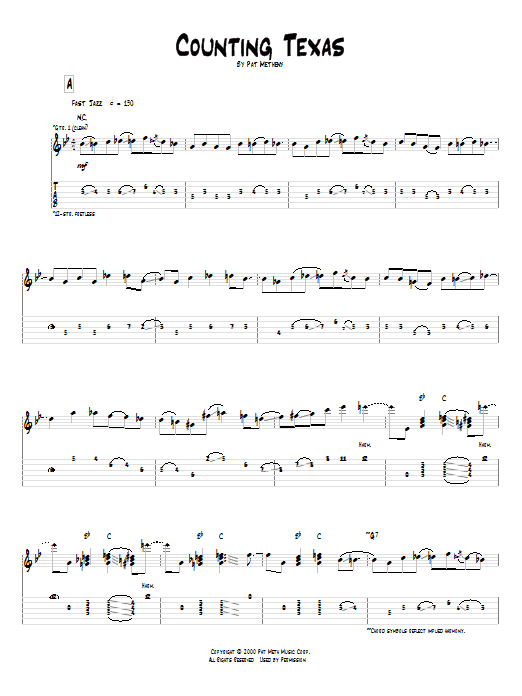 Download or print Pat Metheny Counting Texas sheet music, chords and digital score arranged for Guitar Tab. This Jazz score includes 14 page(s).