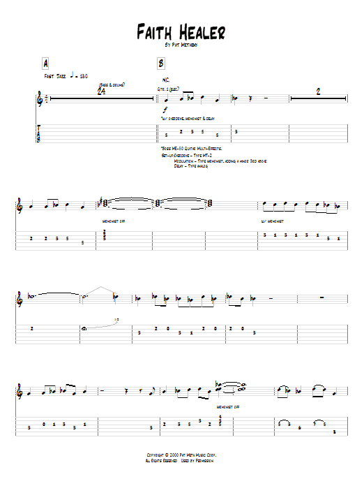Download or print Pat Metheny Faith Healer sheet music, chords and digital score arranged for Guitar Tab. This Jazz score includes 12 page(s).