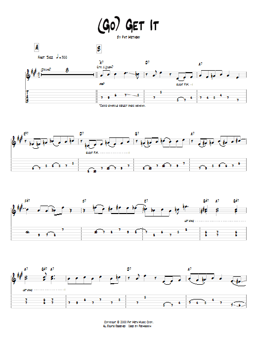 Download or print Pat Metheny (Go) Get It sheet music, chords and digital score arranged for Guitar Tab. This Jazz score includes 17 page(s).