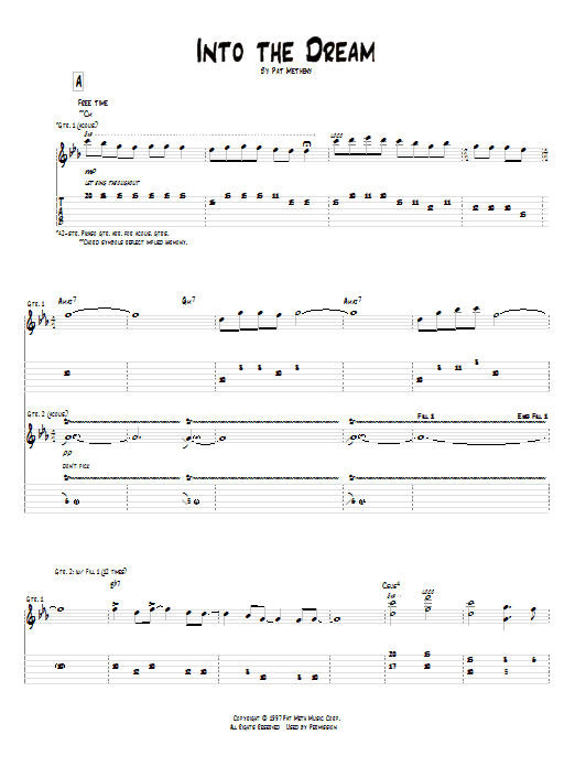 Download or print Pat Metheny Into The Dream sheet music, chords and digital score arranged for Guitar Tab. This Jazz score includes 7 page(s).