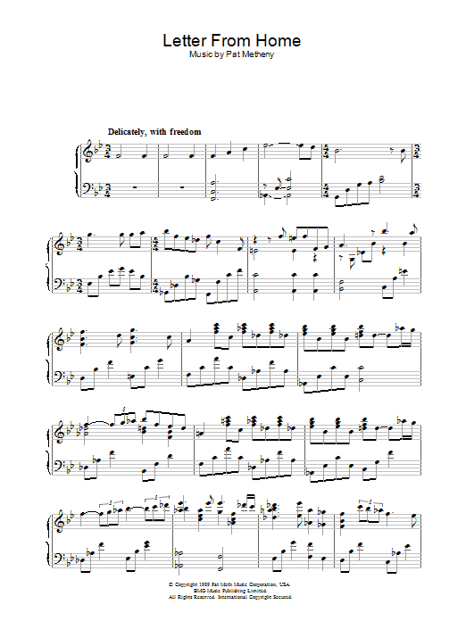 Download or print Pat Metheny Letter From Home sheet music, chords and digital score arranged for Piano Solo. This Jazz score includes 3 page(s).