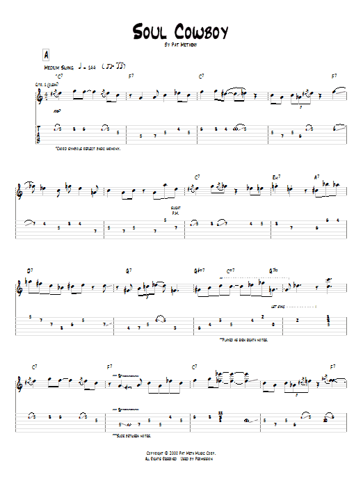 Download or print Pat Metheny Soul Cowboy sheet music, chords and digital score arranged for Guitar Tab. This Jazz score includes 19 page(s).