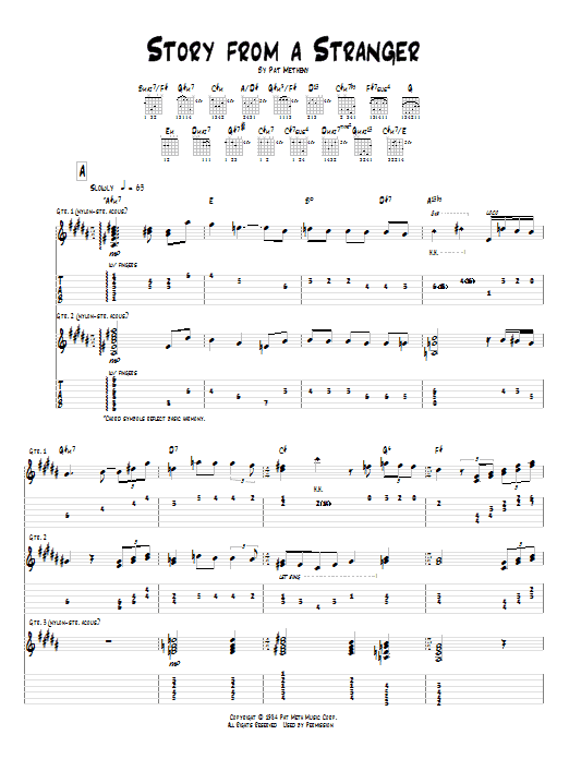 Download or print Pat Metheny Story From A Stranger sheet music, chords and digital score arranged for Real Book – Melody & Chords. This Jazz score includes 2 page(s).