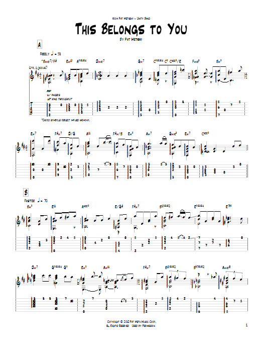 Download or print Pat Metheny This Belongs To You sheet music, chords and digital score arranged for Guitar Tab. This Jazz score includes 5 page(s).