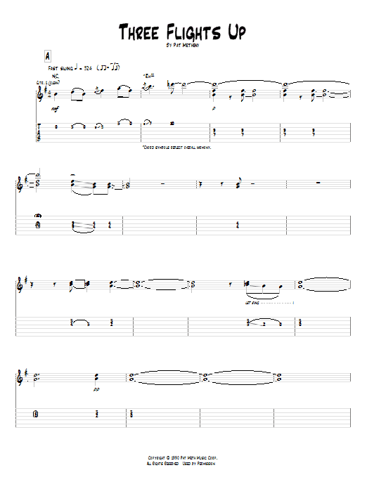 Download or print Pat Metheny Three Flights Up sheet music, chords and digital score arranged for Guitar Tab. This Jazz score includes 21 page(s).