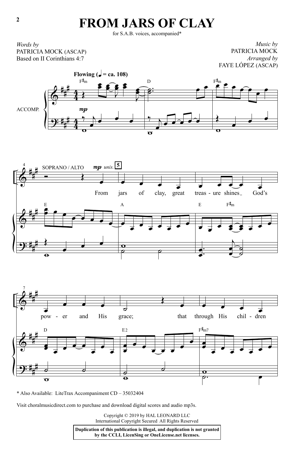 Download or print Patricia Mock From Jars Of Clay (arr. Faye Lopez) sheet music, chords and digital score arranged for SAB Choir. This Sacred score includes 9 page(s).