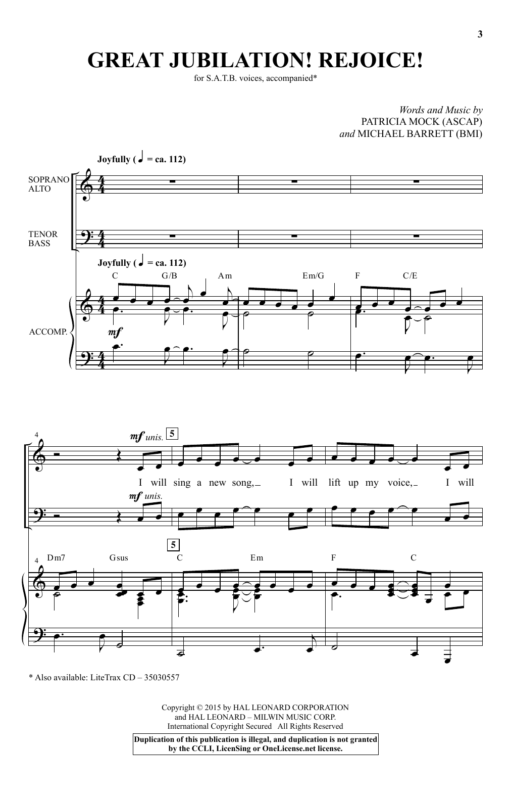 Download or print Patricia Mock Great Jubilation! Rejoice! sheet music, chords and digital score arranged for SATB Choir. This Pop score includes 9 page(s).