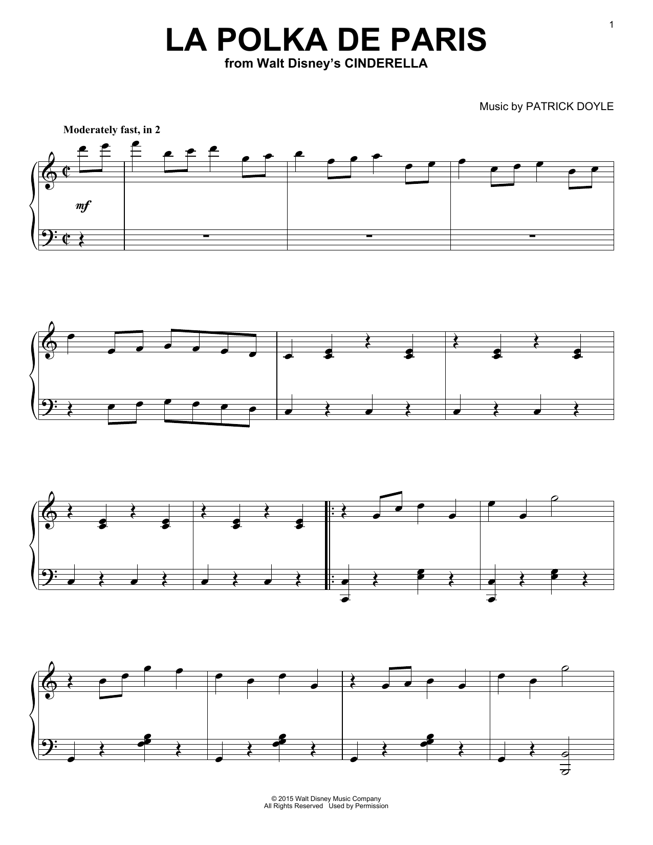 Download or print Patrick Doyle La Polka De Paris sheet music, chords and digital score arranged for Piano Solo. This Children score includes 4 page(s).