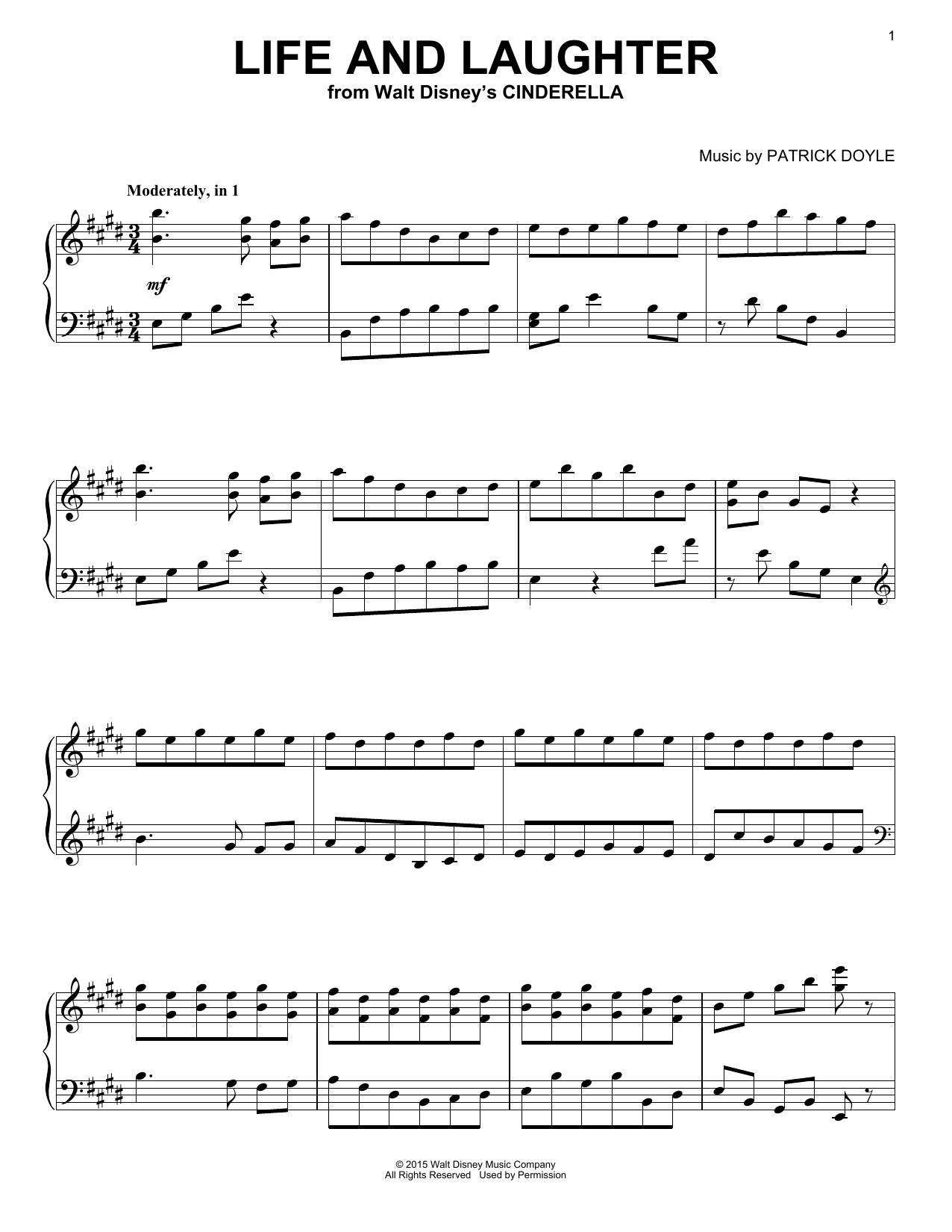 Download or print Patrick Doyle Life And Laughter sheet music, chords and digital score arranged for Easy Piano. This Children score includes 5 page(s).