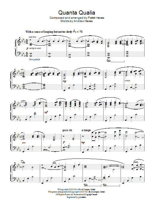 Download or print Patrick Hawes Quanta Qualia sheet music, chords and digital score arranged for Piano Solo. This Classical score includes 3 page(s).