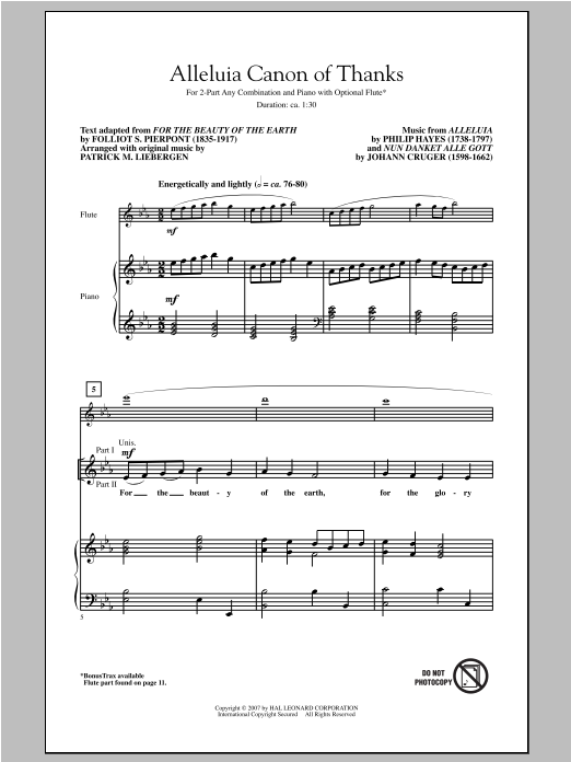 Download or print Patrick Liebergen Alleluia Canon Of Thanks sheet music, chords and digital score arranged for 2-Part Choir. This Concert score includes 11 page(s).