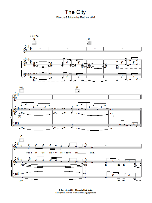 Download or print Patrick Wolf The City sheet music, chords and digital score arranged for Piano, Vocal & Guitar Chords. This Alternative score includes 8 page(s).
