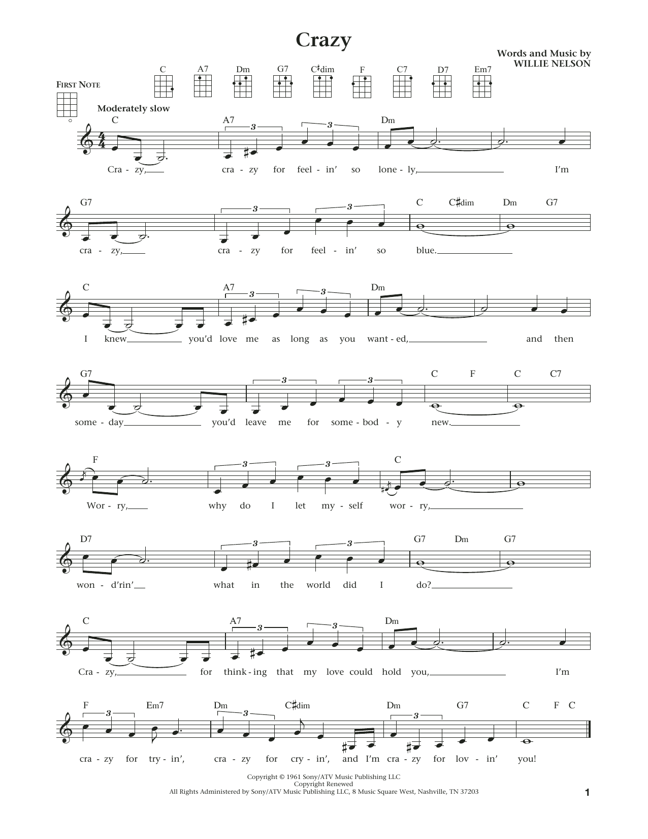 Download or print Patsy Cline Crazy (from The Daily Ukulele) (arr. Liz and Jim Beloff) sheet music, chords and digital score arranged for Ukulele. This Country score includes 2 page(s).