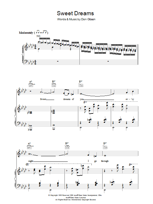 Download or print Patsy Cline Sweet Dreams sheet music, chords and digital score arranged for Easy Piano. This Country score includes 3 page(s).