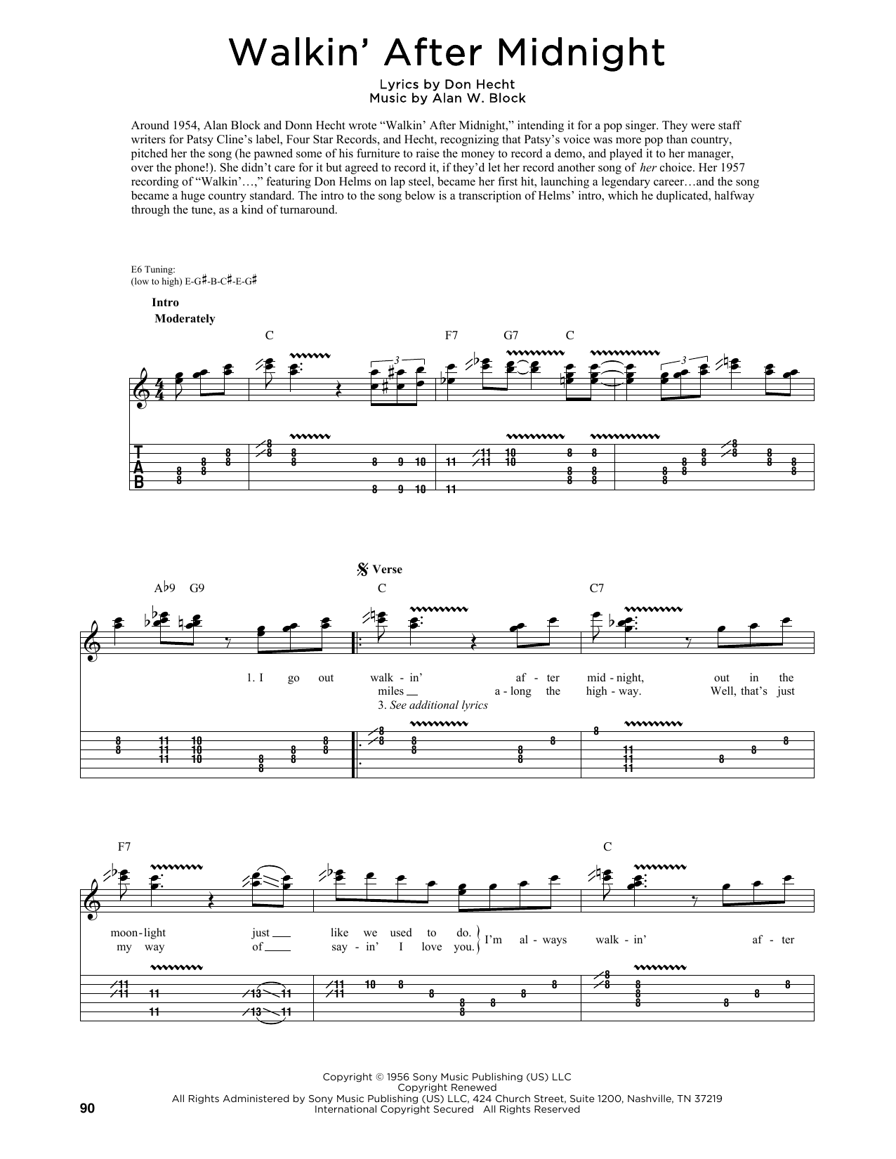 Download or print Patsy Cline Walkin' After Midnight (arr. Fred Sokolow) sheet music, chords and digital score arranged for Guitar Tab. This Country score includes 2 page(s).