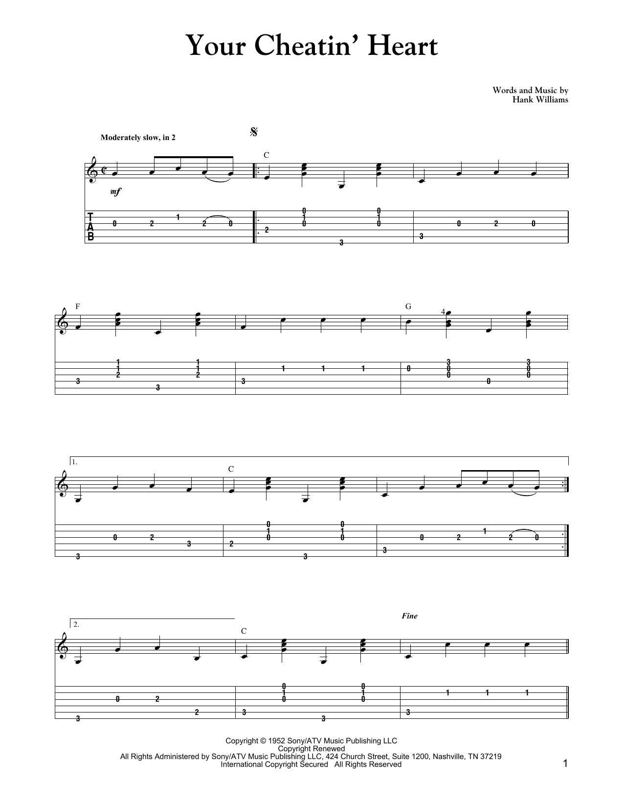 Download or print Carter Style Guitar Your Cheatin' Heart sheet music, chords and digital score arranged for Solo Guitar. This Country score includes 2 page(s).