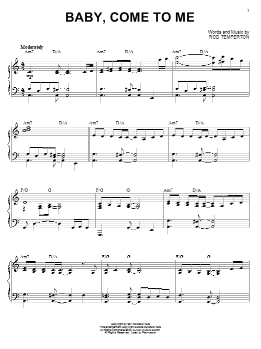 Download or print Patti Austin with James Ingram Baby, Come To Me (arr. Larry Moore) sheet music, chords and digital score arranged for Piano Solo. This Jazz score includes 3 page(s).