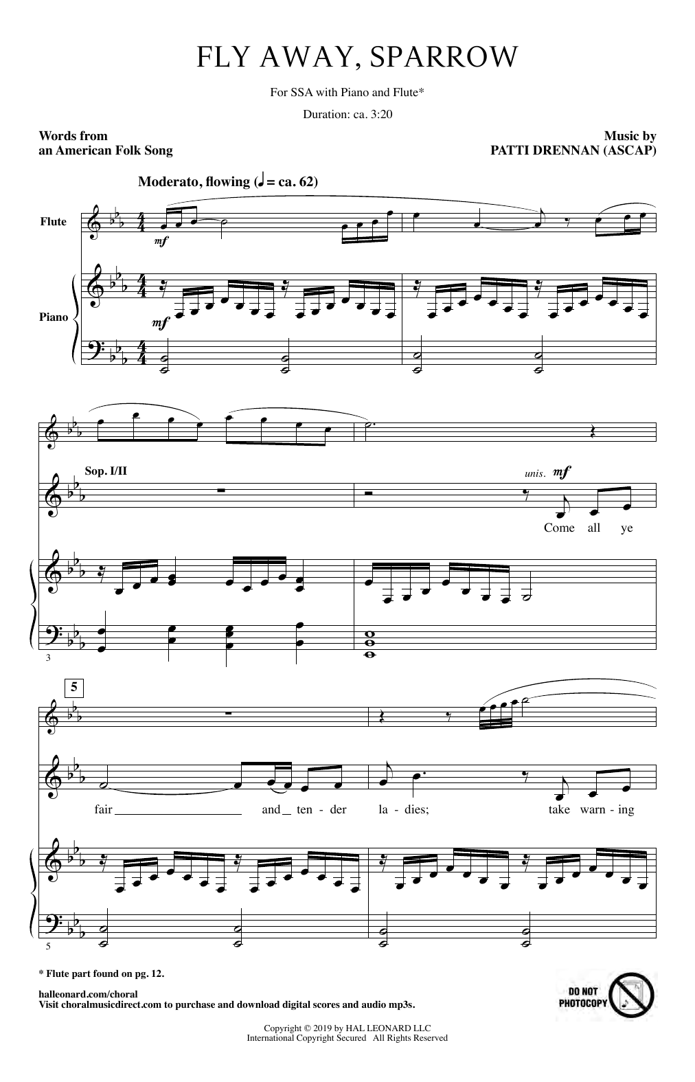Download or print Patti Drennan Fly Away, Sparrow sheet music, chords and digital score arranged for SSA Choir. This Concert score includes 11 page(s).