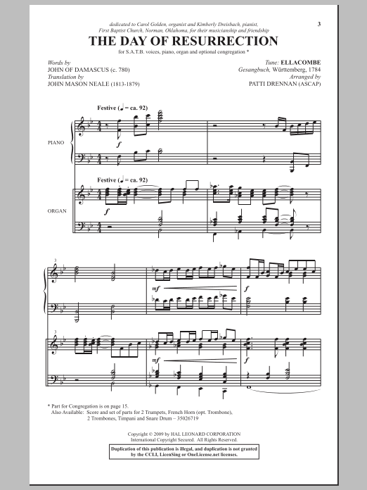Download or print Patti Drennan The Day Of Resurrection sheet music, chords and digital score arranged for SATB Choir. This Easter score includes 4 page(s).